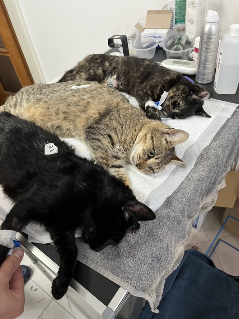 Doch wie so oft blieb es nicht „nur“ bei Kastrationen. Wir führten zwei Sonder- Operationen durch, bei denen jeweils ein Augen entfernt werden musste. Eine schwere Entscheidung – aber für diese Tiere bedeutete sie die Befreiung von dauerhaftem Schmerz und Entzündung. Katzen kommen erstaunlich gut ohne Augen zurecht. Schmerzfreiheit ist Lebensqualität.